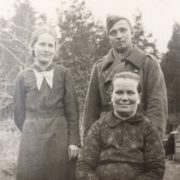Kaarina ja Olavi Vatanen, edessä Kaarinan äiti Hulda Elo.
