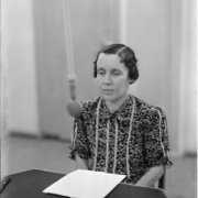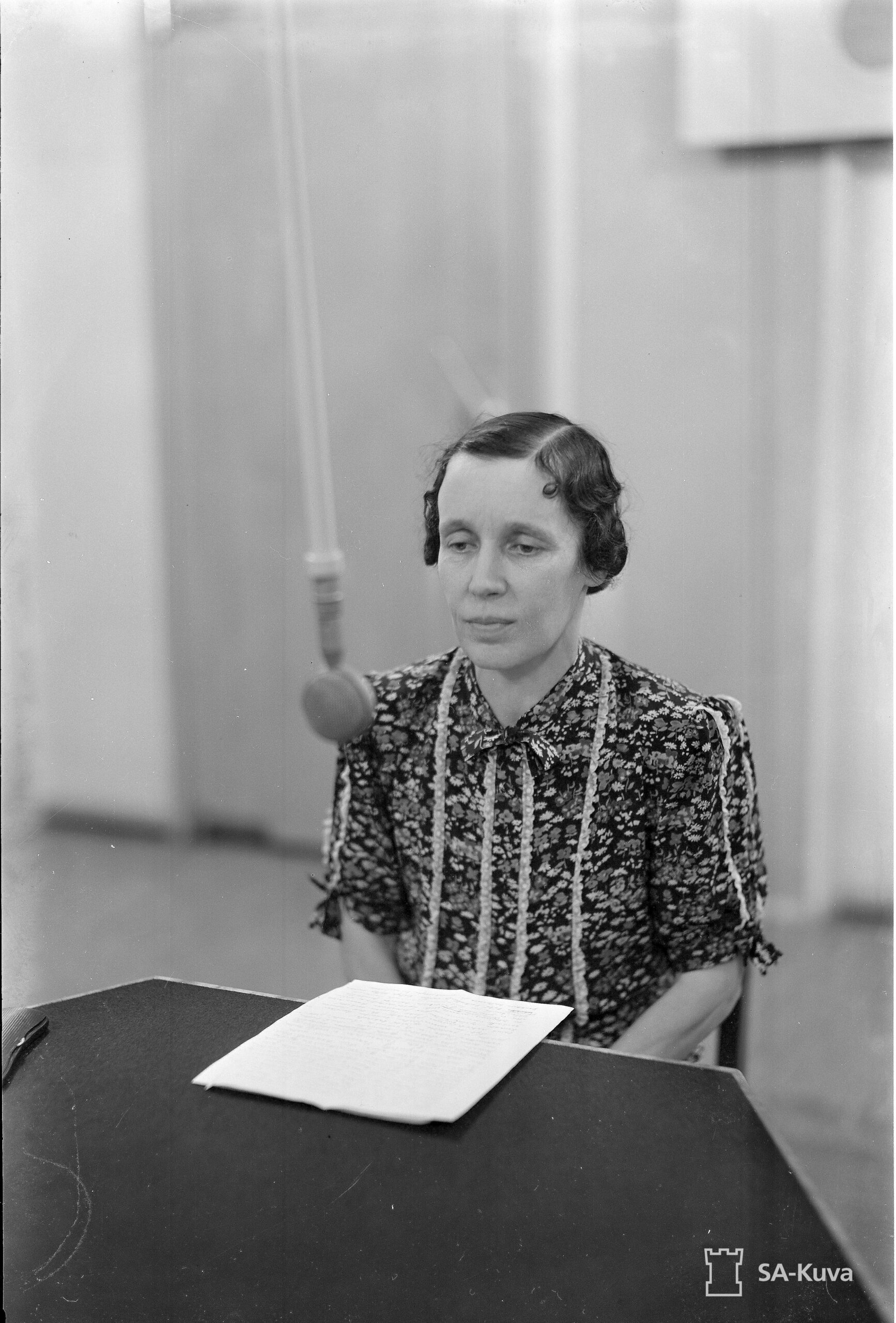 Gerda Ryti puhui viittä kieltä, ratsasti, pelasi tennistä ja soitti pianoa. Hän oli harvinainen maailmannainen jo nuorena tyttönä ja myös Suomen Pankin pääjohtajan, pääministerin ja presidentin puolisona. Kuvassa Gerda pitämässä puhetta Helsingissä 05.07.1941. SA-kuva.