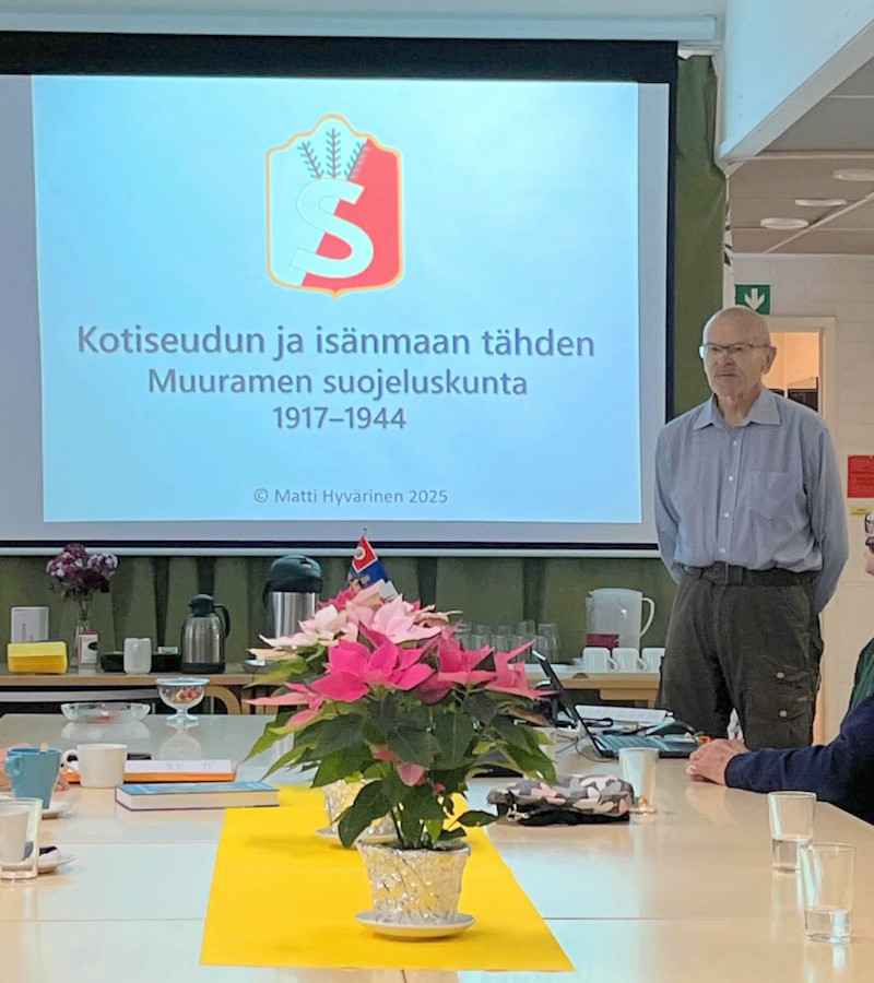 Muuramen Sotaveteraanikerhon / Tammenlehvän Muuramen perinnetoimikunnan kuukausitapaamisen aiheena oli 24.9.2025 historioitsija Matti Hyvärisen esitys Muuramen Suojeluskunnasta vuosina 1917–1944 ja ohessa myös lottatoiminnan merkityksestä. Asiantuntevaa esitystä oli kuulemassa 23 kiinnostunutta kuulijaa.