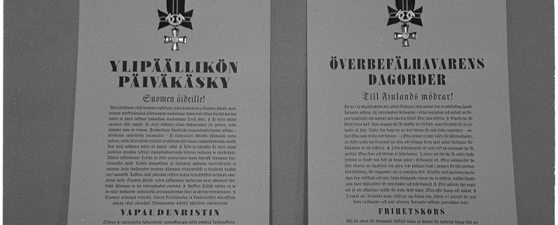 SA-kuva. Mannerheimin Päiväkäsky Suomen äideille.