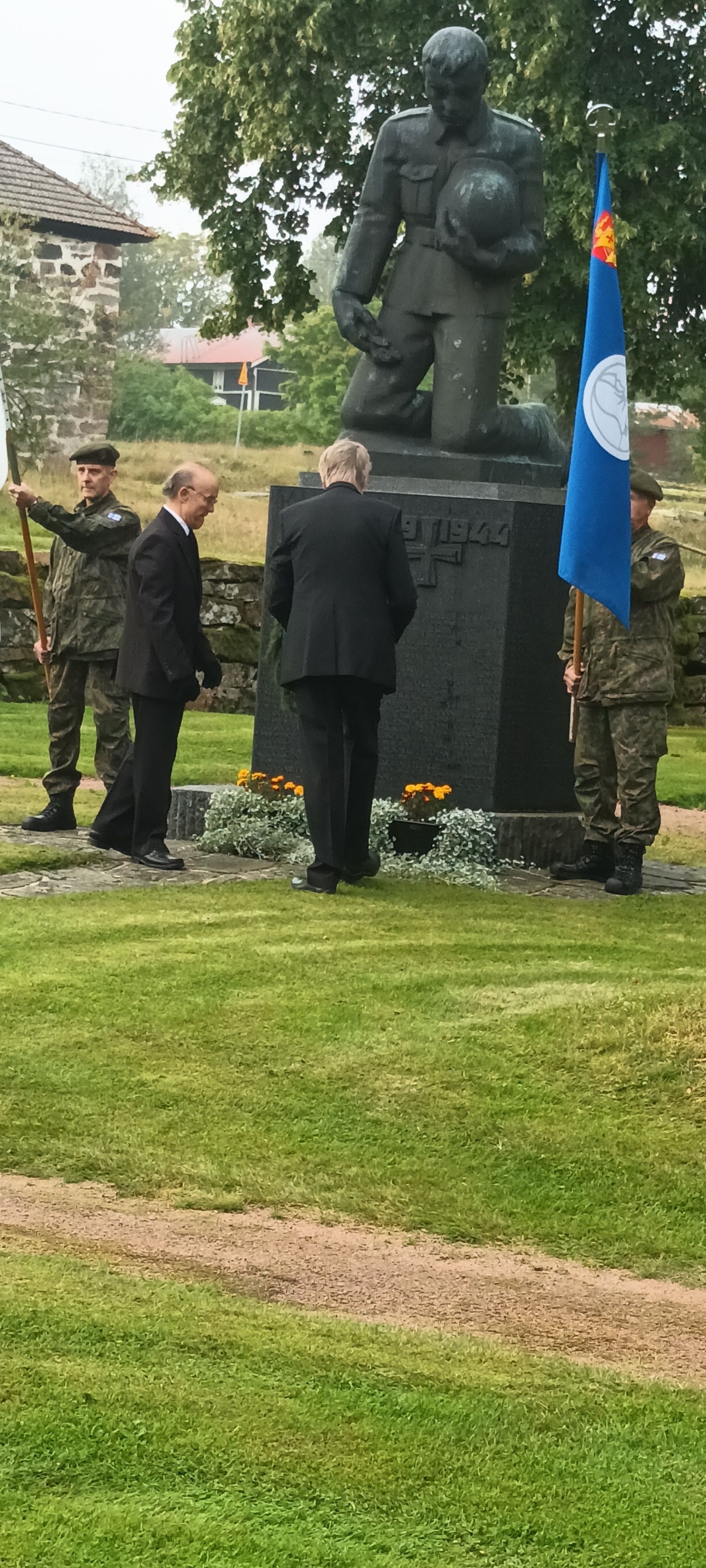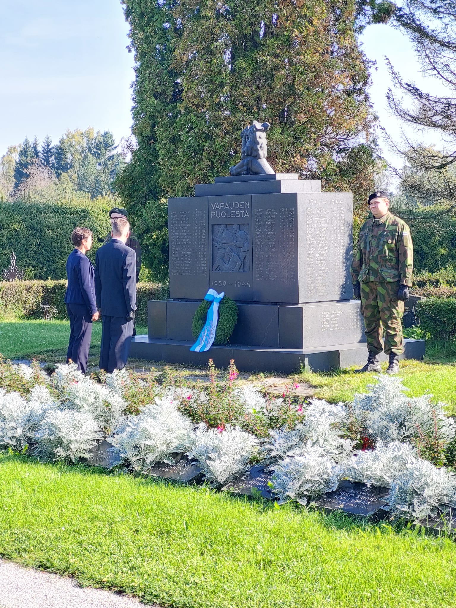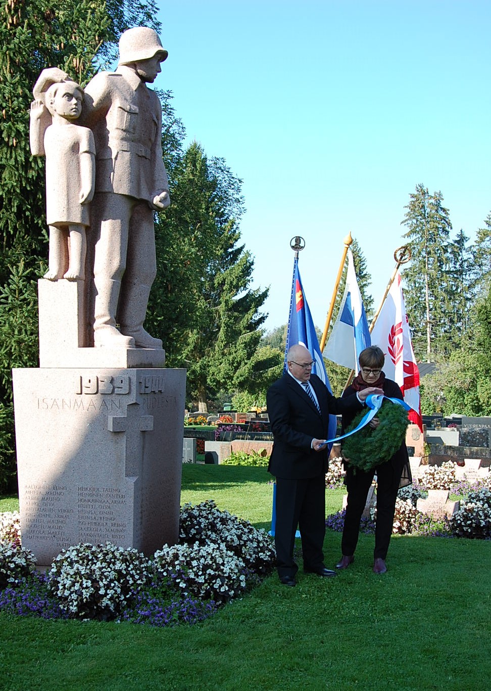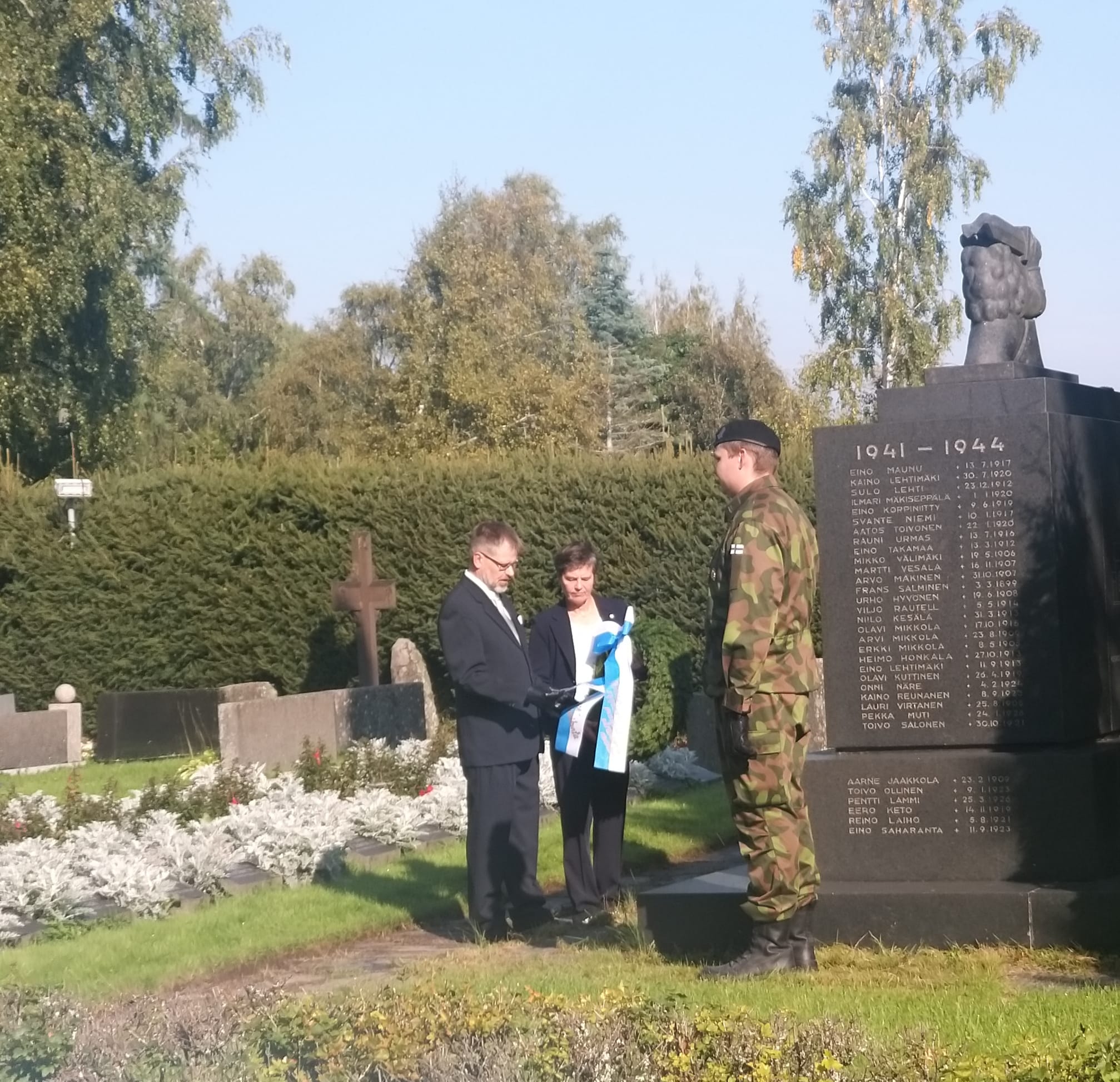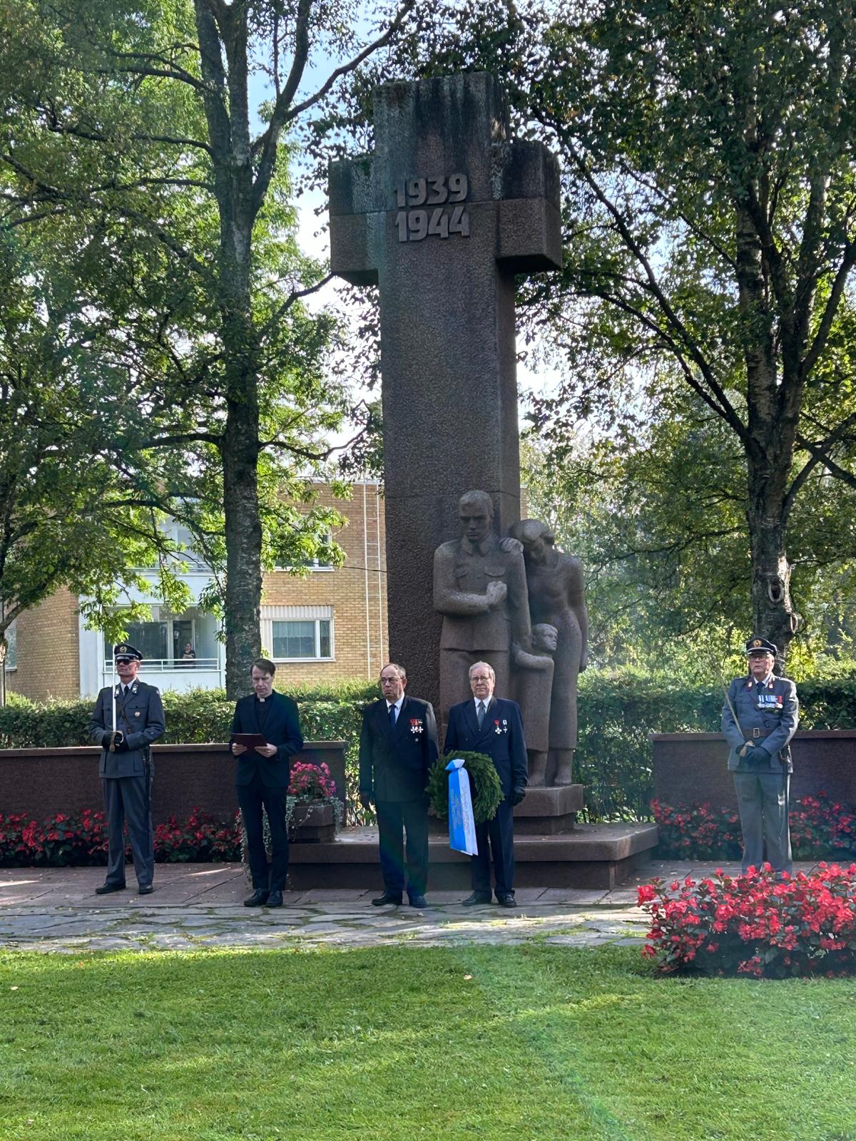 Jatkosodan päättymisen 80-vuotismuistotilaisuutta vietettiin Raisiossa 4.9.. Tilaisuus alkoi seppeleen laskulla sankaripatsaalle. Seppeleen laskivat Sotien 1939-45 Raision perinnetoimikunnan pj. Tapani Mikola ja vpj. Riitta Nikkonen.