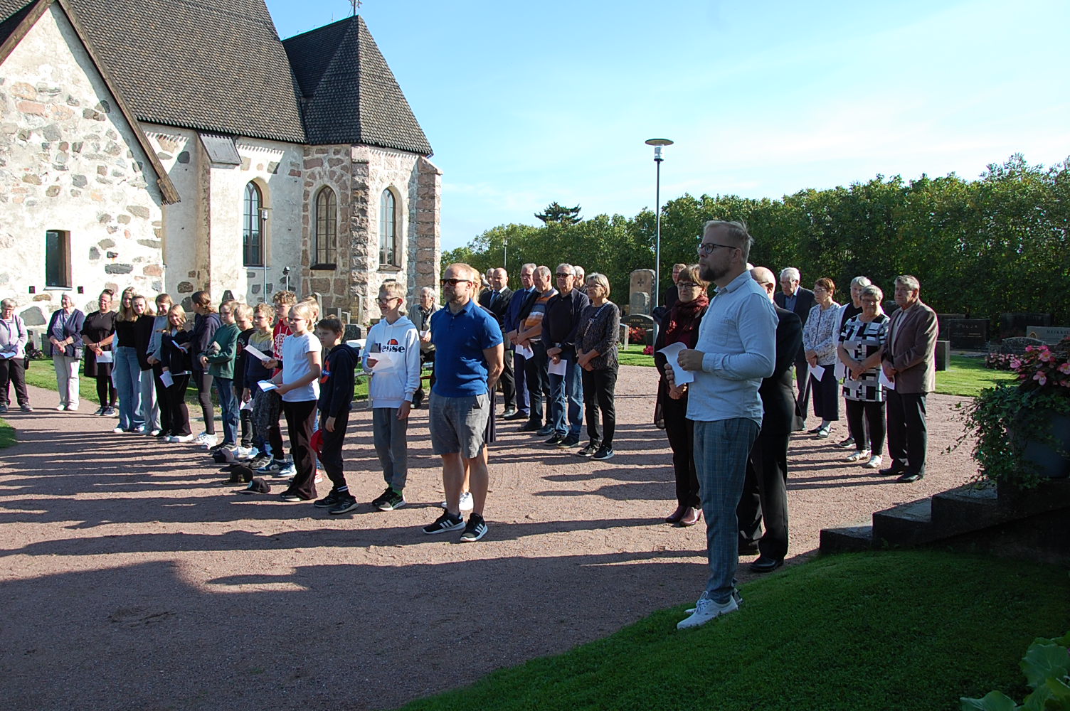 Aluksi perinnetoimikunnan sihteeri kertoi lyhyesti päivän tapahtumista 4.9.1944 ja välirauhan sopimuksen päätöksen etenemisestä ja toivotti paikalla olijat tervetulleeksi. Seppeleen laskijoina olivat Heli Hyrkkö ja Kari Virtanen. Puheen piti vs. kirkkoherra Jarno Johansson. Paikalla oli yksi sotaveteraani sekä 27 aikuista osallistujan lisäksi Kirkonpiirin koulun 6. luokka kahden opettajan johdolla. Tilaisuuden päätteeksi oli kahvit ja oppilaille mehu.