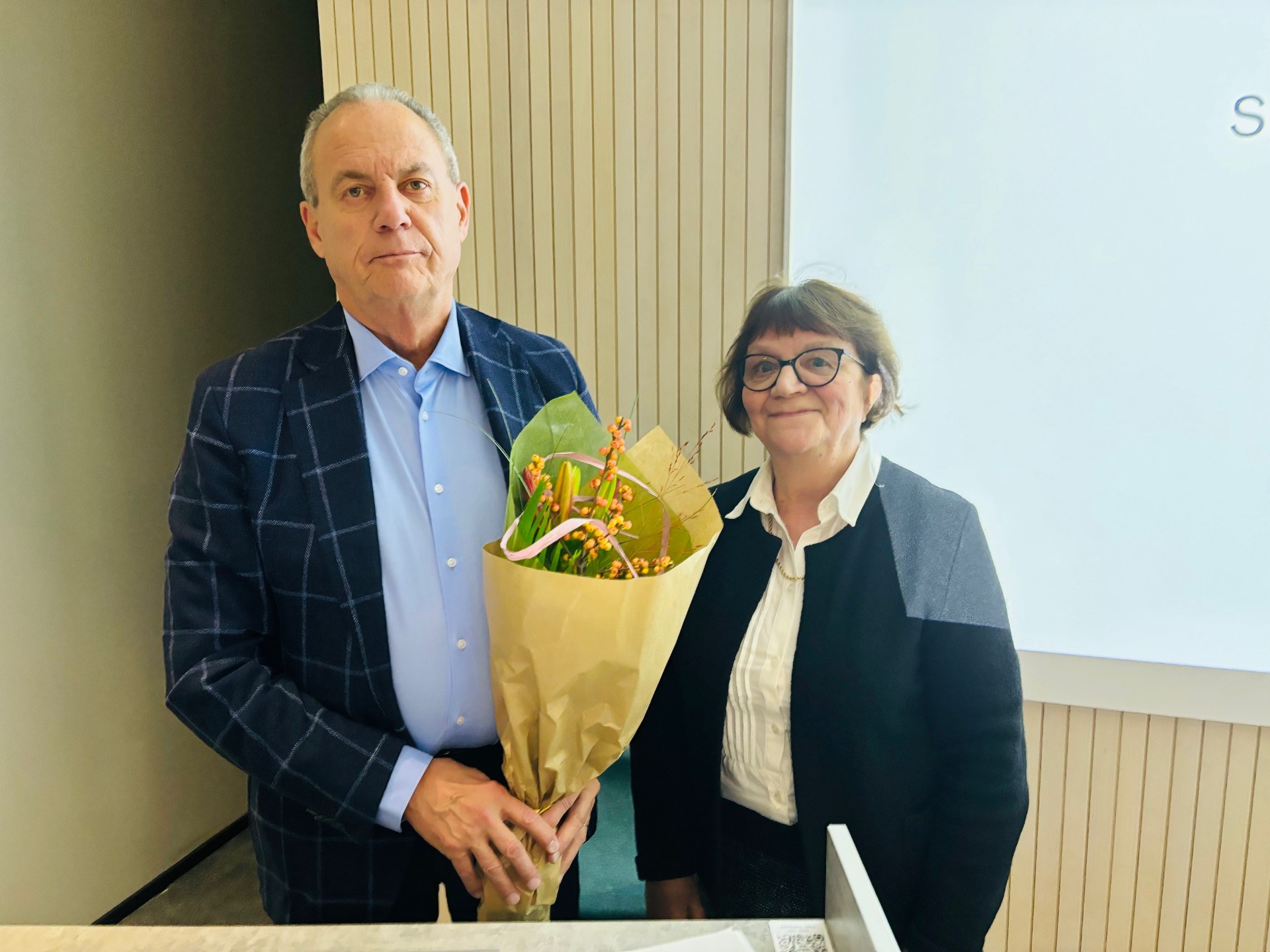 Tammenlehvän Perinneliiton pitkäaikainen toiminnanjohtaja Pekka Holopainen siirtyy vuoden vaihteessa eläkkeelle. Edustajiston puheenjohtaja Marja-Liisa Taipale ojensi Pekalle edustajiston kukkakimpun lämpimien kiitosten kera.