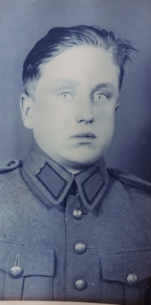Isän nimi: Antinp. Lähin omainen: Isä Polvijärvi, Martonvaara, Lipasvaara. Nainut tai naimaton: N:ton. Siviilitoimi tai ammatti: Maanvilj. Koulusivistys: 3 lk. kansak. Äidinkieli:S Vieraitten kielten taito: Ei. Ollut kutsunnassa 22.9.1939. Hyväks. vak. palvelukseen. Määrätty astumaan palvelukseen 27.12.1939. Joukko-os. johon määrätty: Pion. koul. keskus. Saapunut 27.12.1939 ja määrätty 3. kompp. Sotilasvala 1.2.40. Arvostelu: Täsmällisyys, ahkeruus, huomiokyky, sot. kehitys, käytös, kaikissa Hyvä. Palveluksen laatu: Aseellinen. Huomautuksia: Siirr. 10.2.40 1.K:n. Siirr. 3./ Pion. P. 18. 11.3.40. Lomalla 10 vrk 17.10 – 26.10-40. Siir 15.12-40 3./ Pion. P. 5. Erikoiskoulutus asevelv. Pioneeri. Sotilasarvo: Pioneeri. Pituus 169 cm Paino 63 kg. Silmien väri: Sininen. Kaasunaamarin numero: 2 Saappaan numero: 43. Vapautettu 26.6.1941; Täysin palvelleena. Palvelusaika: 18 kk. Vakituinen asuinpaikka ja osoite vapauttamisen jälkeen: Polvijärvi, Martonvaara, Lipasvaara.