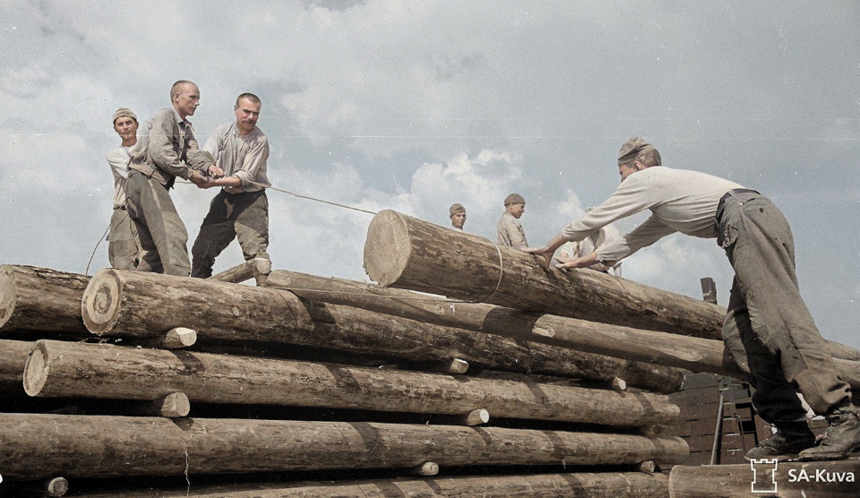 Kun työvoimaa oli vähän, vahvistuksia otettiin sotavangeista ja Itä-Karjalan paikallisväestöstä.