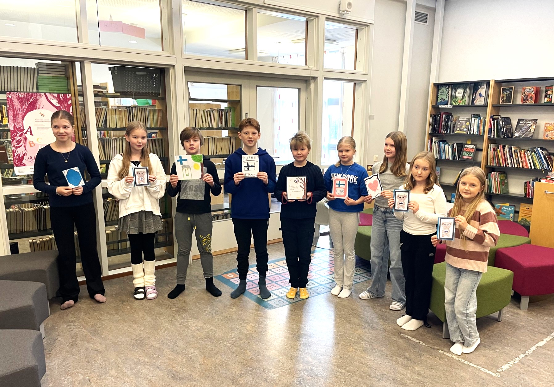 Pieni joukko reippaita ja uteliaita oppilaita ehti kuvaan kesken kiireisen koulupäivän.