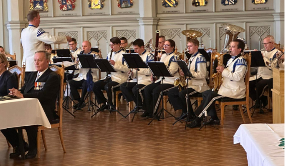 Kaartin soittokunta aloitti tilaisuuden juhlallisesti Jean Sibeliuksen Jääkärimarssilla.
