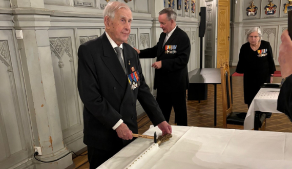 Tammenlehvän Perinneliitolle oma lippu – ensimmäisen naulan löi sotaveteraani Aimo Reinikainen