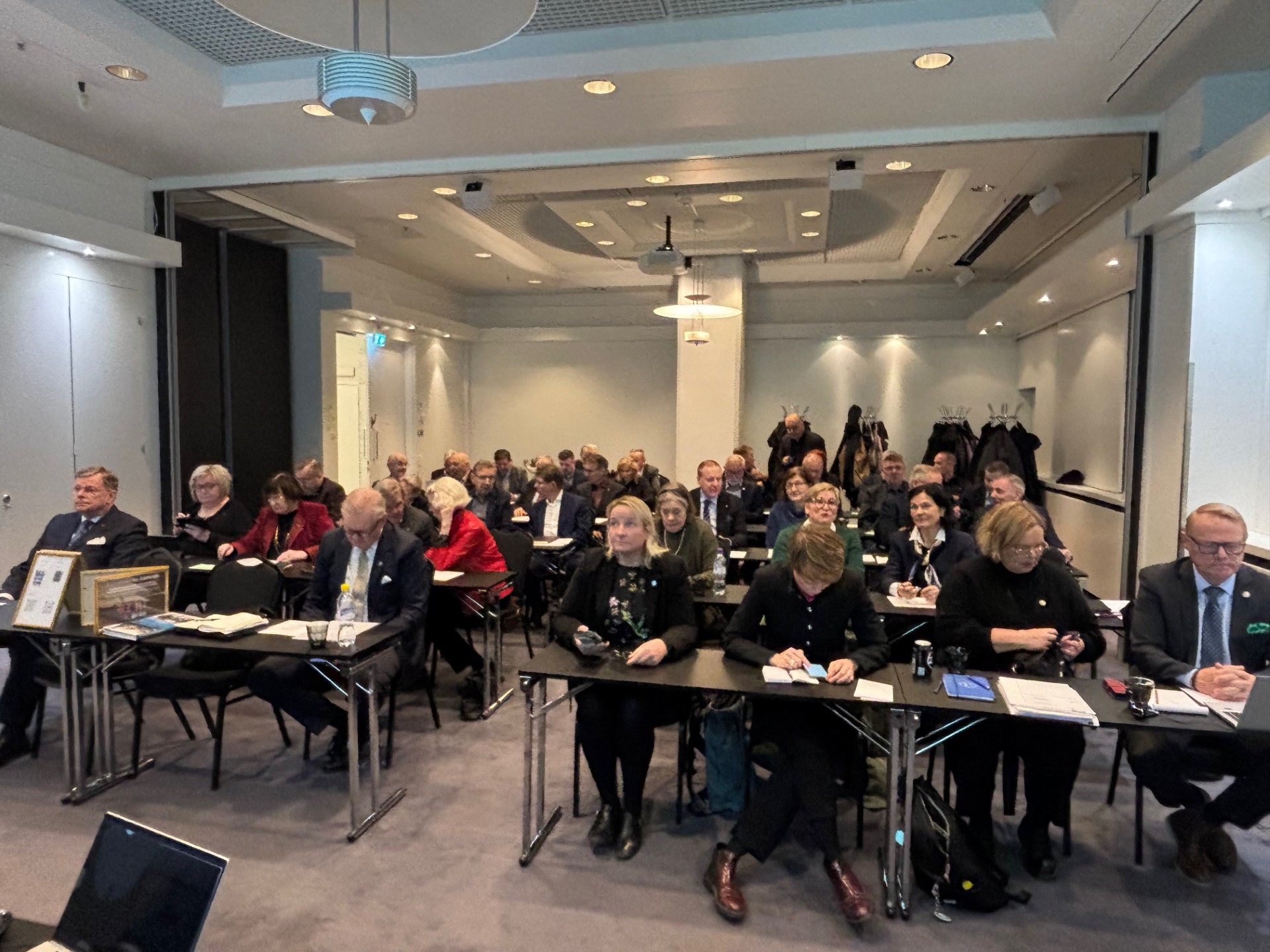Tammenlehvän Perinneliiton syyskokous perjantaina 14.11. keräsi Helsinkiin kolmisenkymmentä osallistujaa sekä yhdeksän etäosallistujaa antamaan suuntaviivoja tulevalle toiminnalle. Kokouspäivä sai juhlallisen alun, kun Tammenlehvän Perinneliiton puheenjohtaja Timo Laitinen vastaanotti liiton ansioristin.