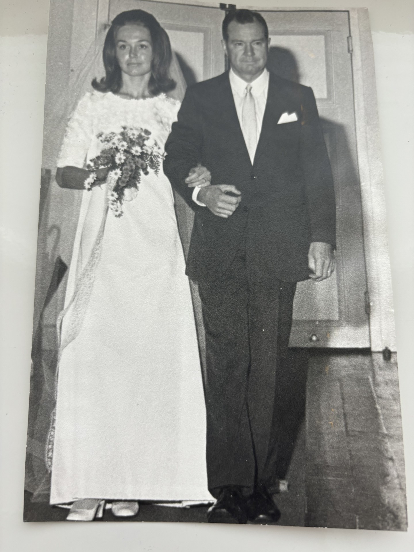 Kuvassa Leena Sartio astelemassa avioon isänsä Mauri Sartion saattamana Tampereen Vanhassa kirkossa 30.8.1969. Leena tapasi aviomiehensä Erkki Lassilan Helsingin opiskelijaelämässä. Yhteiseloa on kertynyt jo 55 vuotta. Aviomies Erkki teki pitkän uran radiologian erikoislääkärinä Helsingissä. Leena ja Erkki ovat kasvattaneet karjaa ja viljelleet Erkin sukutilaa Hattulassa omien töidensä rinnalla.