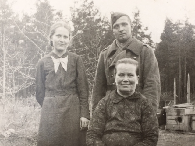 Kaarina ja Olavi Vatanen, edessä Kaarinan äiti Hulda Elo.