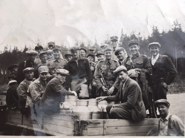 Huhtamolaisia miehiä sotaan lähdössä. Olavi oikealla seisomassa.
